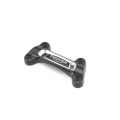 トライアンフ純正のCNC機械加工によるアッパーハンドルバークランプ。Triumphの象徴であるロゴとブラックアルマイト仕上げが特徴です。